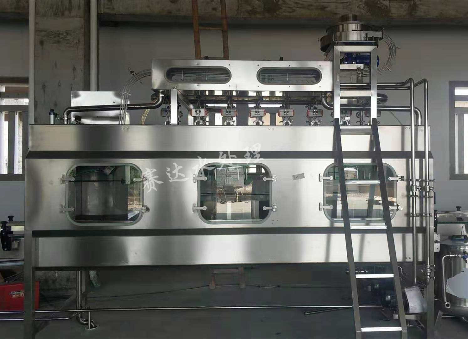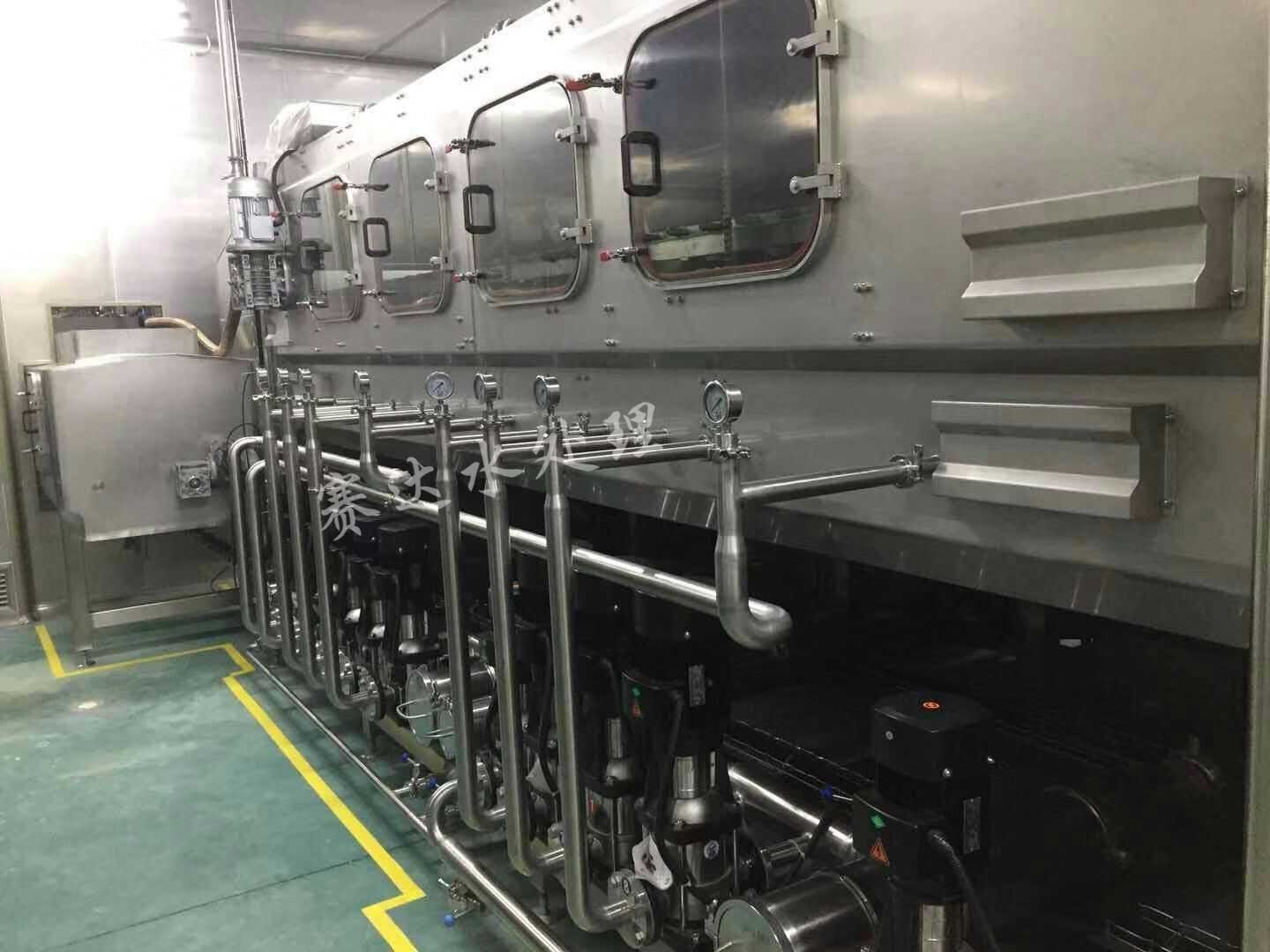 桶裝水灌裝機(jī)集消毒、沖洗、灌裝、封蓋于一體,其沖洗工位包括:熱堿液噴洗、、消毒液噴洗、道回用水噴洗、成品水噴洗、滴干等工位,具體根據(jù)用戶要求,做6-20個(gè)不同的沖洗工位。